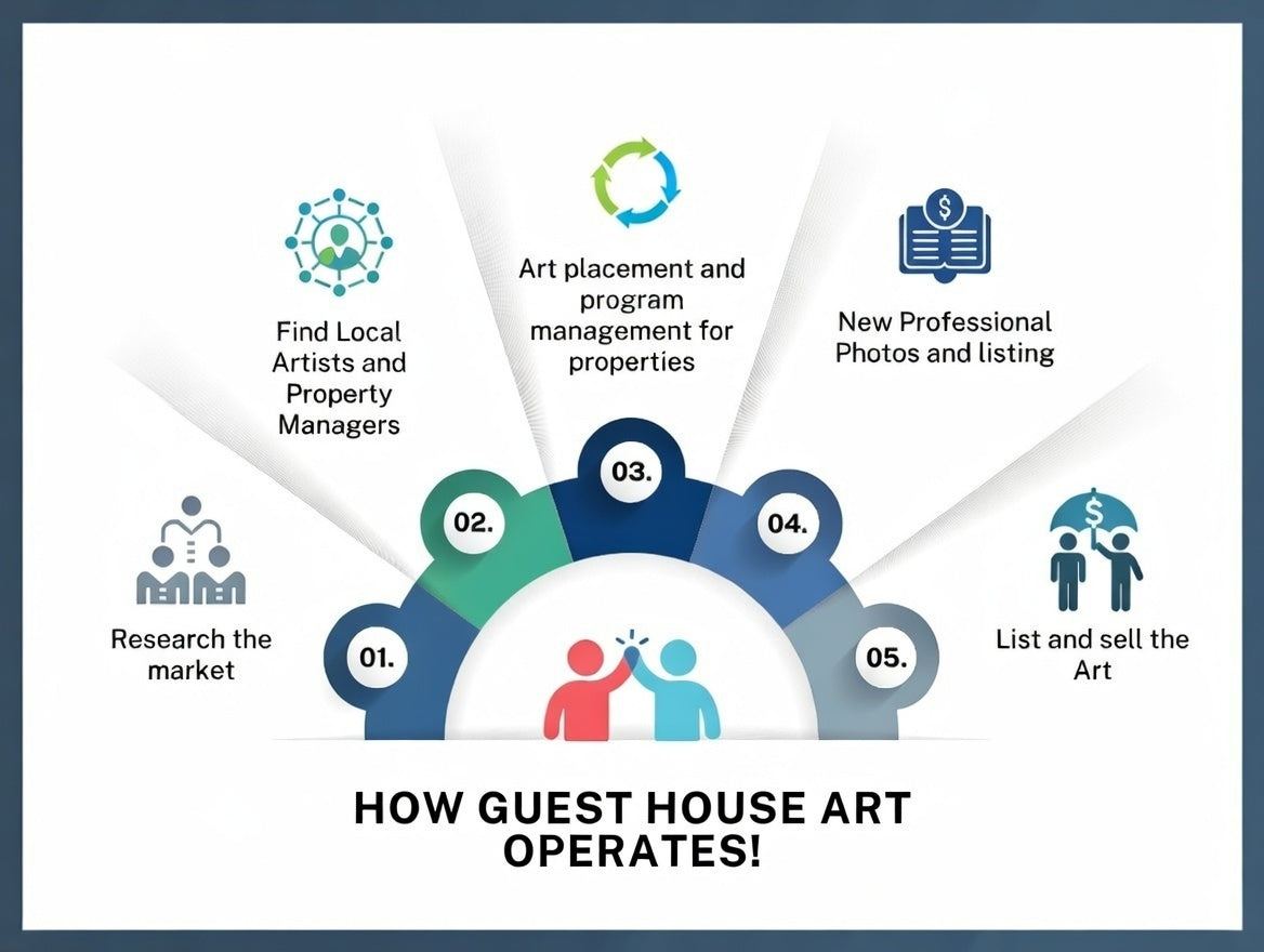 Guest House Art connects local artists with homeowners and Airbnb hosts by placing artwork inside real homes — giving artists exposure and giving properties personality.